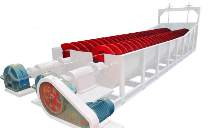 砂石表面的杂质,同时破坏包覆砂粒的水汽层,以利于脱水;同时加水,形成强大水流,及时将杂质及比重小的异物带走,并从溢出口洗槽排出,完